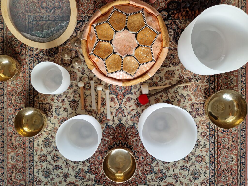 Immerse yourself in a calming sound experience with singing bowls, voice, and intuitive instruments. A space to slow down, release tension, and reconnect with yourself.
